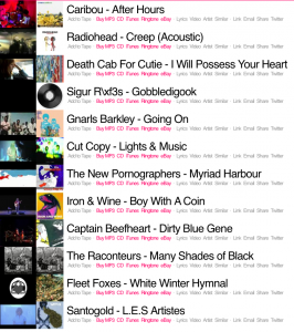 Whats nice about Favtape is its easy integration into many different platforms. Most songs have videos searchable on Youtube, so a thumbnail is created for those, and every song has a “Buy MP3” link. It took about 15 years, but things seem to be looking better for innovative music platforms online.